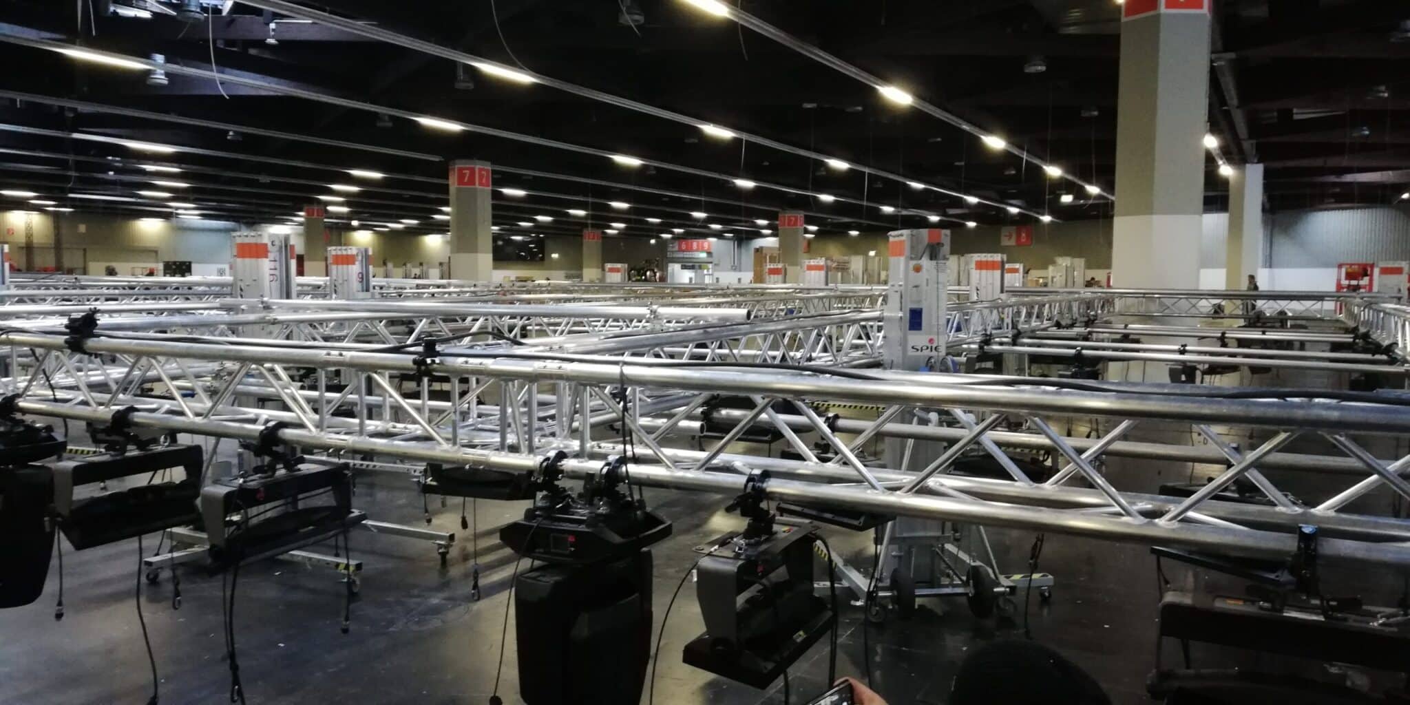 Für eine gut durchdachte Beleuchtung und für die bestmögliche Aufhängung von Kundenlasten wie Bannern, Exponaten oder abgehängten Ausstellungsstücken und Dekoration bildet hierfür das sogenannte Traversen-Rigg oder eine Traversenstrecke das Grundgerüst. An Ihnen lassen sich alle Bauteile, die ihren Messestand schon von weitem sichtbar machen, in der Höhe befestigen.